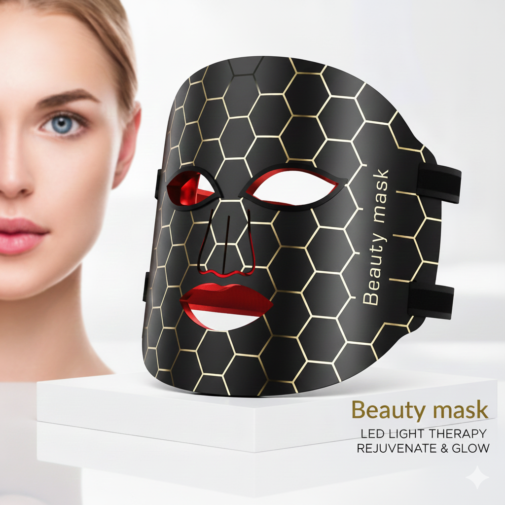 LED Face Mask Light Therapy, 7 Colors LED Red Light Therapy Mask for Face, Best Gift for Mom, Wife, Grandma, Black